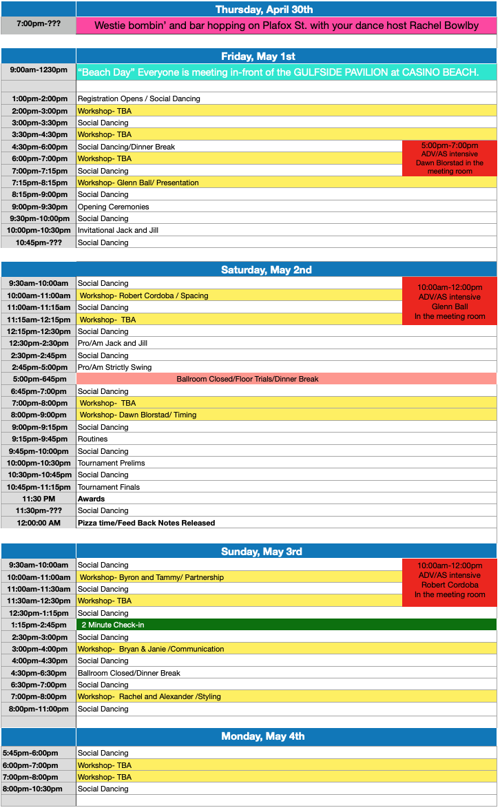 -Amateur dancers enter as individuals, are randomly assigned a Pro partners, and dance to music selected in advance by the Competition DJ. Each Amateur will dance with 2 different Pros. (You can dance both roles at the same level)